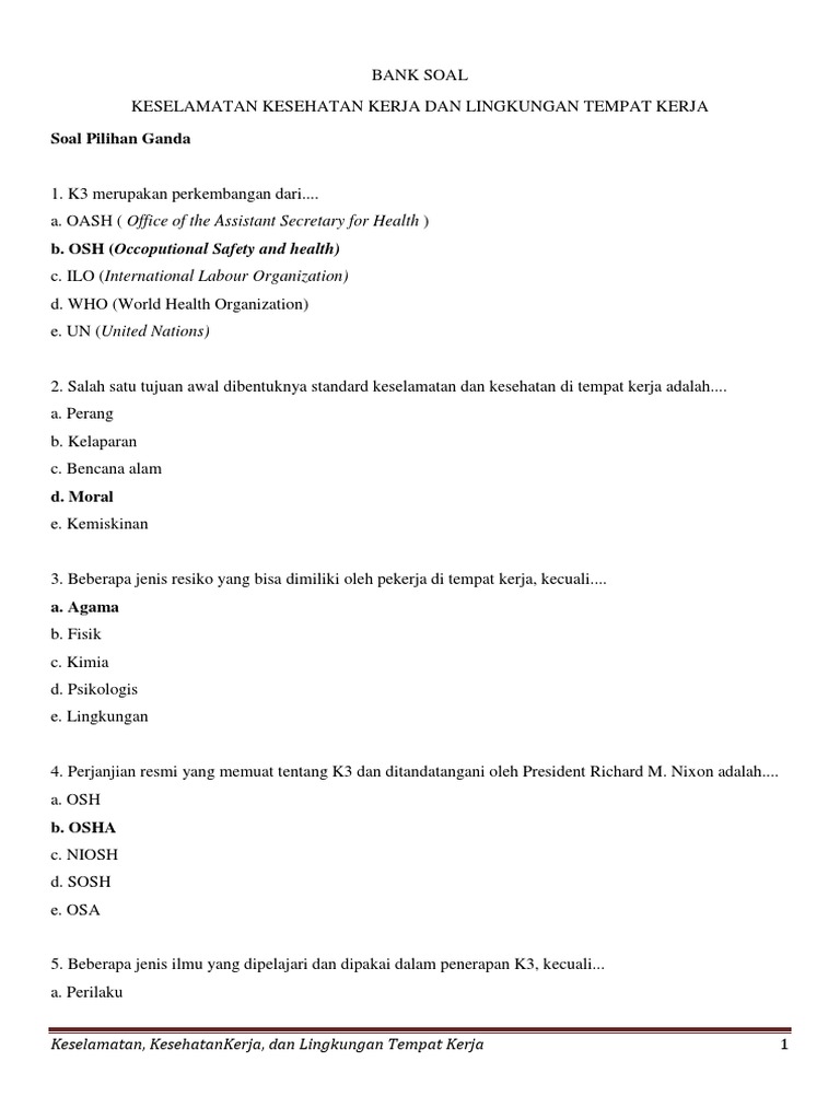 Soal Mid Semester Ganjil Plh Kelas X. Bank soal ahli k3umum. Soal dan jawaban k3lhpdf.