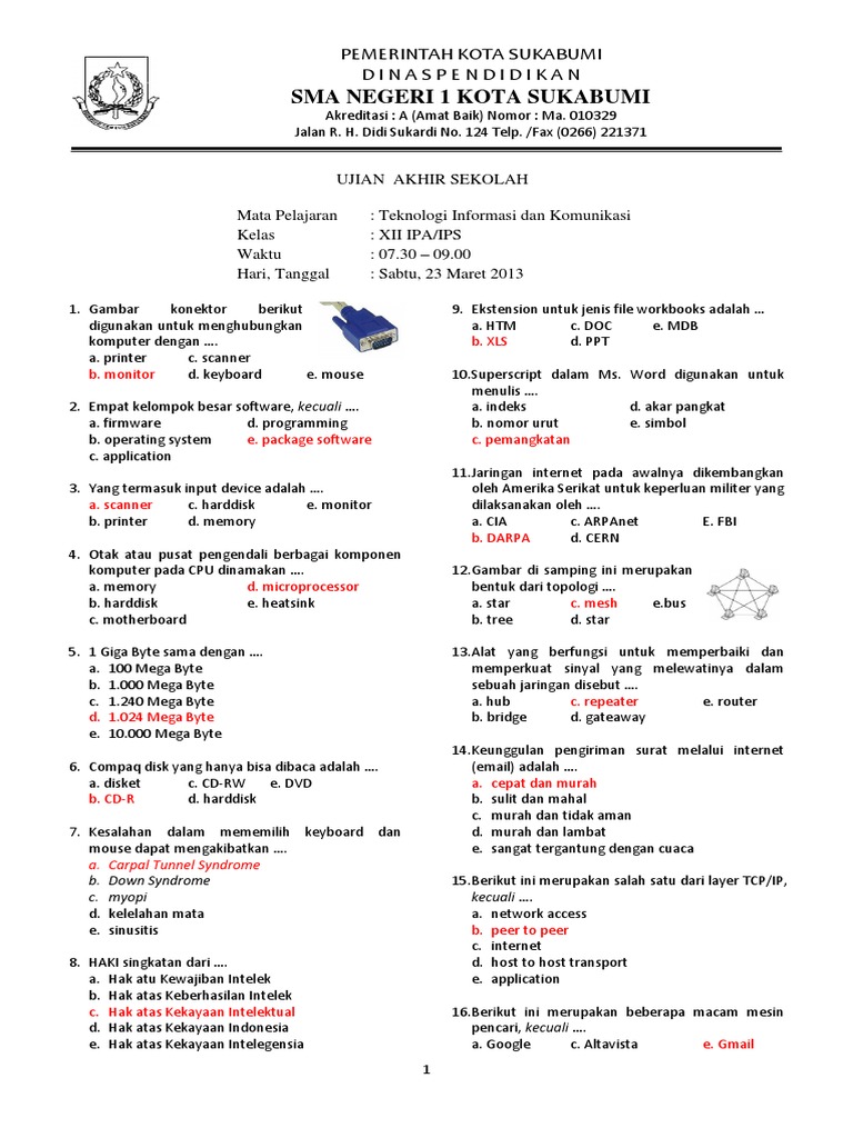 Pilihan ganda soal dan jawaban uas tik kelas xii 40 butir. Soal UAS TIK Kelas 1 Semester 1. Materi TIK Kelas 12 Semester 1 dan 2 - Untuk menuju masyarakat yang berbasis ilmu pengetahuan dan teknologi diperlukan wawasan mengenai bagaimana cara penggunaan teknologi informasi dengan baik dan benar.