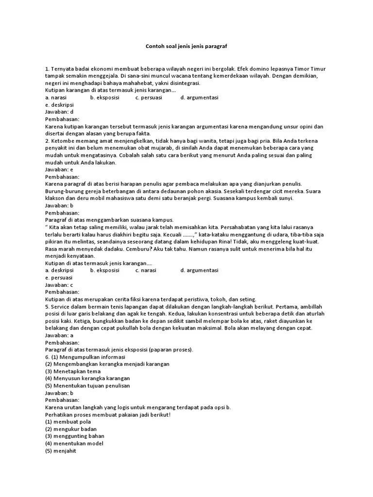Contoh Soal Jenis Jenis Paragraf Cute766