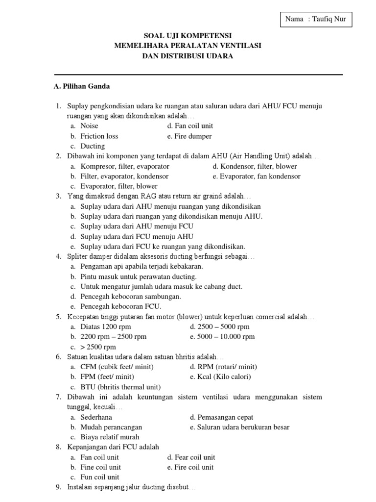 20200824 Soal Dan Jawaban Kelistrikan Jawaban easy nya mana pak guru.