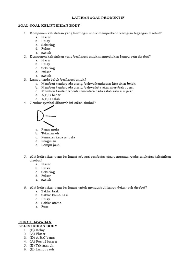 Soal latihan kelistrikan body 2017 2018 xi tkr soal. Dasar listrik elektronika waktu. Kumpulan Soal Produktif Otomotif beserta jawaban ImronSoal uts tmkr2 kelas xi tkr sistem pendingin dan sistem bahan bakar b.