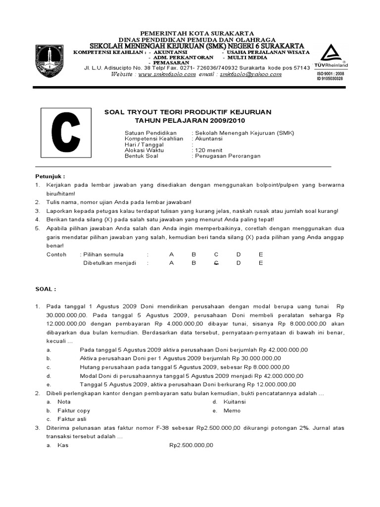 Soal Ujian Akuntansi Smk Helmi Kediris