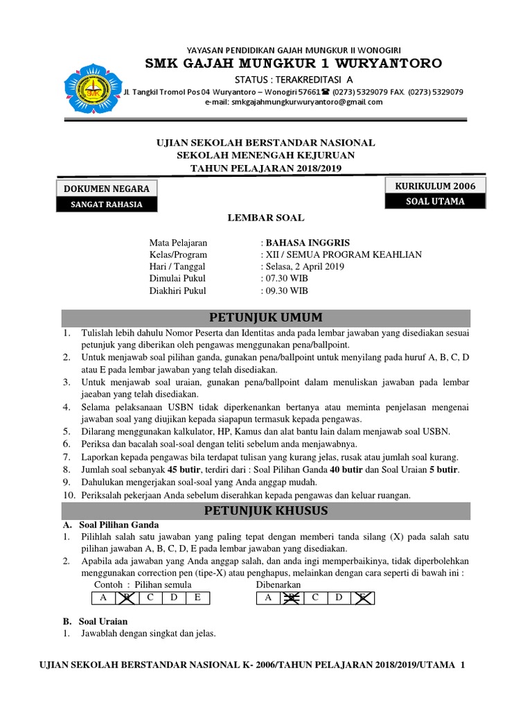 Soal Usbn Bahasa Inggris 2019 Smk Lengkap Beserta Kunci Jawabannya Administrasi Ngajar
